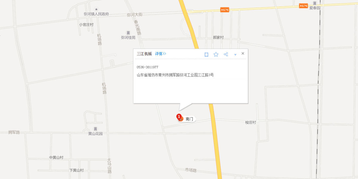 立即咨詢青州市三江機(jī)械有限公司坐落于中國(guó)北部的花木之鄉(xiāng)——山東省青州市,風(fēng)景優(yōu)美,交通便利,人杰地靈。